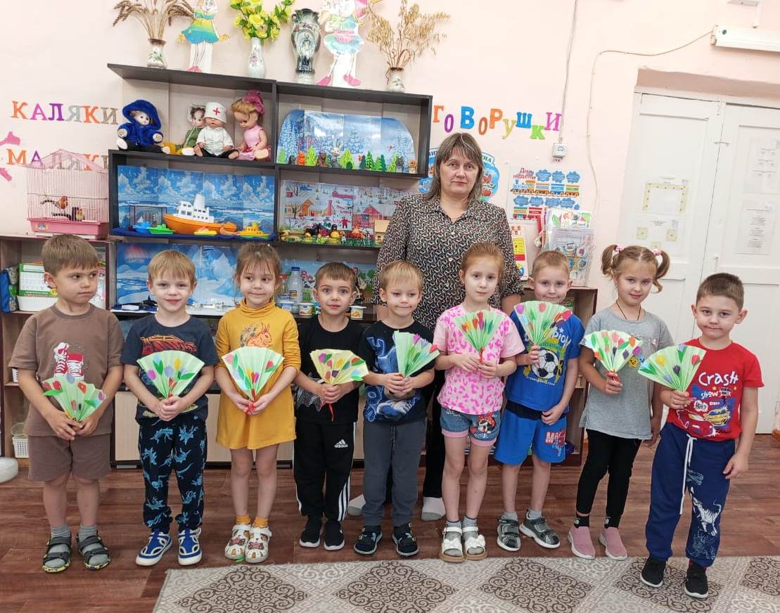 Ребята с большим старанием, с помощью заготовок цветов из цветной бумаги и атласной ленточки смастерили необычный букет цветов в виде сложенного из бумаги веера. У каждого получилась неповторимая поделка, наполненная теплотой и вниманием к маме. Дети были в восторге от такого оригинального подарка мамам. В заключении мероприятия сделали общее фото со своими поделками, которые будут радовать мам в их праздник, ведь самый лучший подарок – это подарок, сделанный своими руками. | |